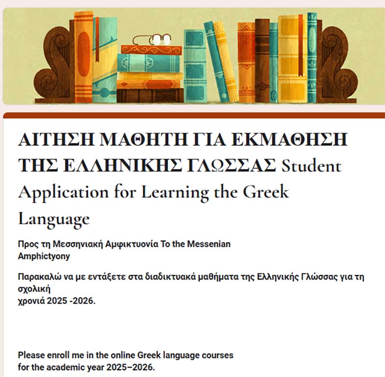 “Σε συνέχεια των, επί μακρόν διάστημα προσπαθειών και συζητήσεων του Δ.Σ. της Μεσσηνιακής Αμφικτυονίας με τις Διευθύνσεις Εκπαίδευσης Μεσσηνίας, είμαστε στην ευχάριστη θέση να σας ανακοινώσουμε, ότι άνοιξε η πλατφόρμα για ΔΩΡΕΑΝ διαδικτυακά μαθήματα εκμάθησης της ελληνικής γλώσσας, σε ομογενείς όλου του κόσμου, δεύτερης, τρίτης κ.α. γενιάς που δεν είχαν την ευκαιρία να διδαχθούν ελληνικά.