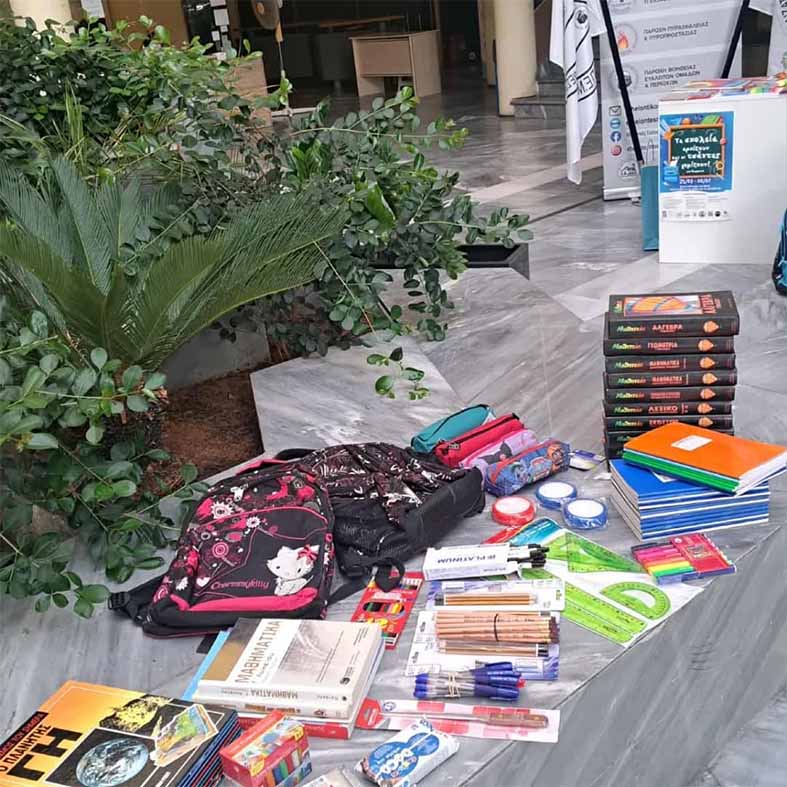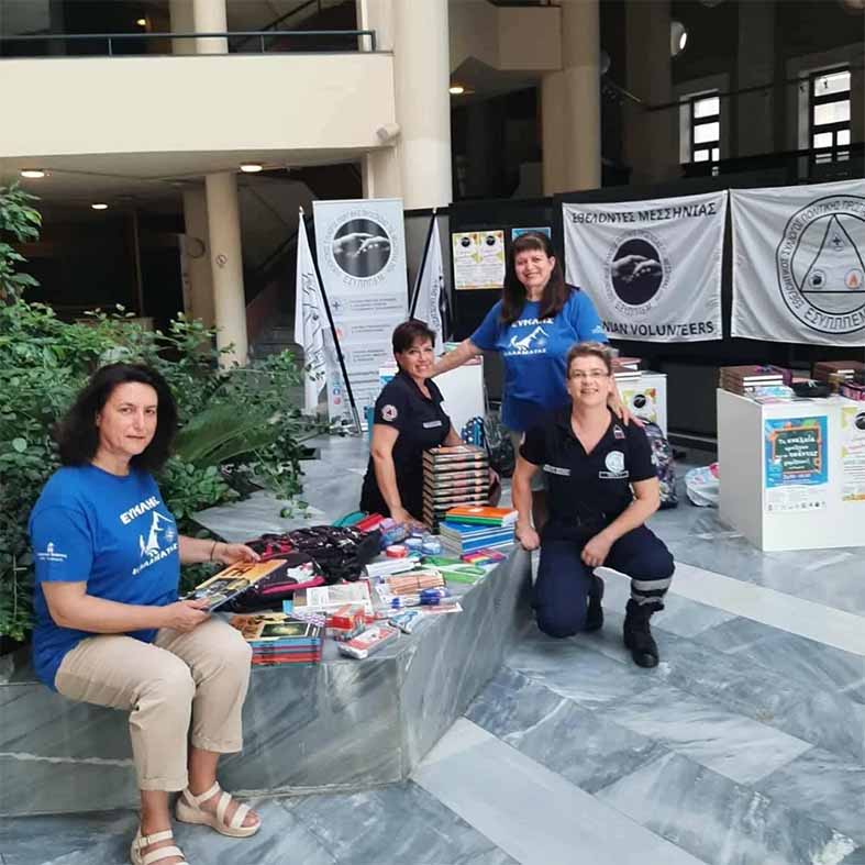 “Εκπροσωπώντας τους φυσιολάτρες του Συλλόγου Πεζοπόρων και Ορειβατών Καλαμάτας ”Ο Ευκλής” η πρόεδρος Ελένη Οικονομοπούλου και η έφορος δημοσίων σχέσεων Χριστίνα Καλέκα επισκέφθηκαν το απόγευμα της Δευτέρας (8/9ου) το Πνευματικό Κέντρο Καλαμάτας, προκειμένου να παραδώσουν τα συγκεντρωμένα σχολικά είδη από τους πεζοπόρους του συλλόγου στον Εθελοντικό Σύλλογο Πολιτικής Προστασίας Π.Ε. Μεσσηνίας ενισχύοντας την δράση του “Βοήθα το συμμαθητή σου”, εν όψη της νέας σχολικής χρονιάς.