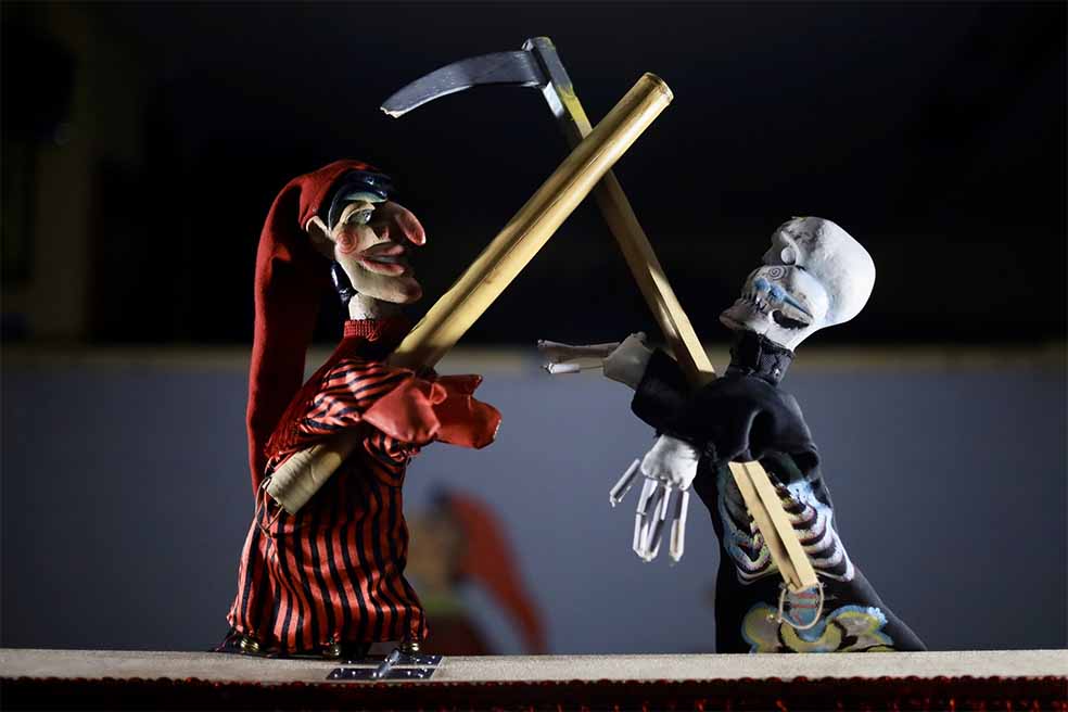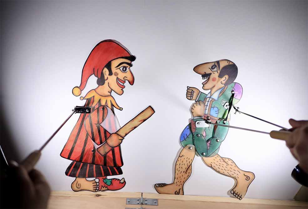 Η ομάδα κουκλοθεάτρου «Σπείρα» και ο Θίασος Σκιών του Κωνσταντίνου Δημητρακόπουλου ενώνουν τις δυνάμεις τους σε μια μοναδική σύμπραξη με πρωταγωνιστές τους δυο χαρακτηριστικούς λαϊκούς ήρωες, τον Καραγκιόζη και τον Φασουλή! Τα δύο λαϊκά θεάματα παρουσιάζονται σε ένα περιστρεφόμενο σκηνικό σε μια παράσταση γεμάτη εκπλήξεις!