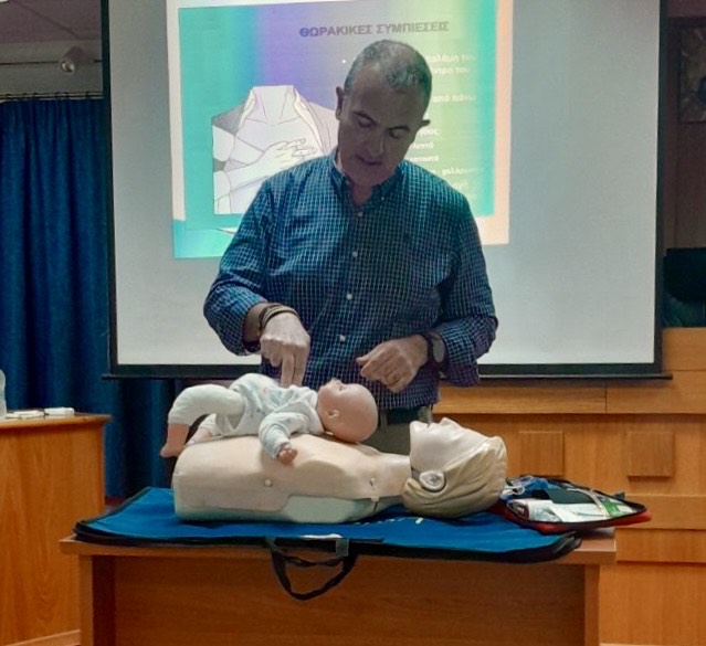 Στη συνέχεια, ο Ηλίας Μανδηλάρης, Επιμελητής Α’ Γενικής Ιατρικής του ΠΙ Μαυροματίου, πραγματοποίησε εντυπωσιακή πρακτική επίδειξη ΚΑΡΠΑ για παιδιά ηλικίας 0 έως 16 ετών, προσφέροντας στο κοινό πολύτιμες γνώσεις για την αντιμετώπιση έκτακτων περιστατικών που μπορεί να συμβούν στο σπίτι, στο σχολείο ή σε χώρους δραστηριοτήτων.