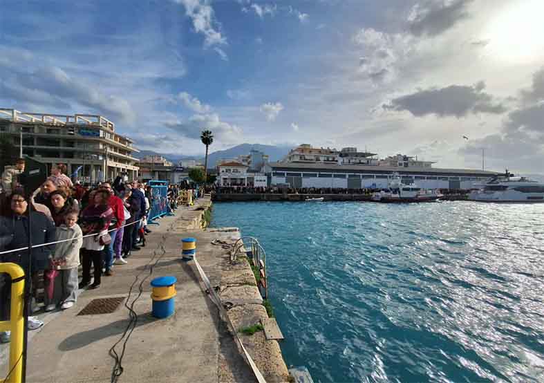 Εκεί ακολούθησε η τελετή κατάδυσης του Τιμίου Σταυρού και ο Αγιασμός των υδάτων στο λιμάνι της πόλης. Τριάντα (30) ήταν οι θαρραλέοι κολυμβητές που έπεσαν στη θάλασσα για να ανασύρουν τον Τίμιο Σταυρό, εκ των οποίων αρκετοί ανήλικοι.
