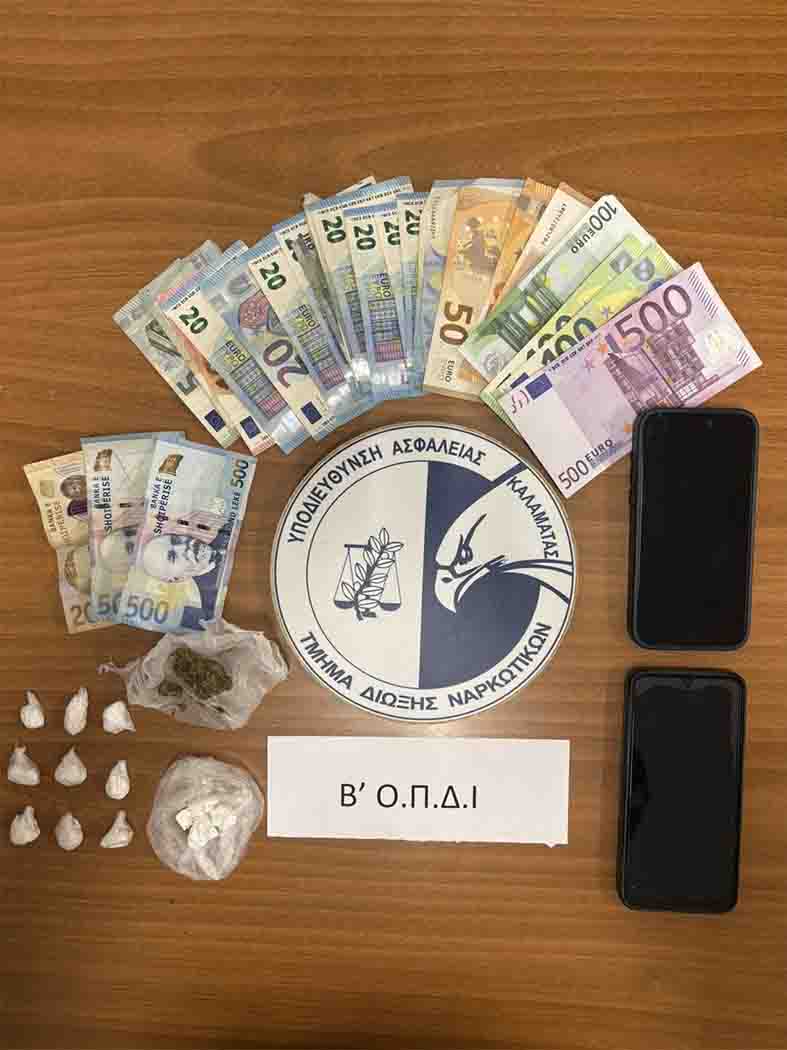 Από αστυνομικούς του Τμήματος_Δίωξης_Ναρκωτικών της Υποδιεύθυνσης Δίωξης και Εξιχνίασης Εγκλημάτων Καλαμάτας, σε συνεργασία με τη Β’ ΟΠΔΙ Μεσσηνίας, συνελήφθησαν, -2- άτομα, ηλικίας 26 και 24 ετών, αντίστοιχα, γιατί αρχικά σε έλεγχο σε όχημα στο οποίο επέβαιναν, κατελήφθησαν να κατέχουν από κοινού ποσότητες κοκαΐνης, συνολικού βάρους
