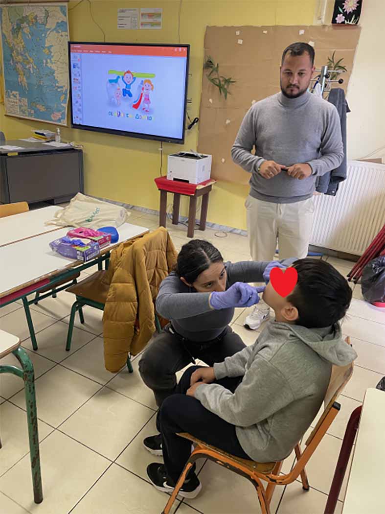Κατά την επίσκεψη πραγματοποιήθηκε προληπτικός έλεγχος στους μαθητές του σχολείου.Παράλληλα, έγινε ενημέρωση και εκπαίδευση των παιδιών σχετικά με τη σημασία της στοματικής υγιεινής και τη σωστή τεχνική βουρτσίσματος των δοντιών, με στόχο την υιοθέτηση υγιεινών συνηθειών από μικρή ηλικία.