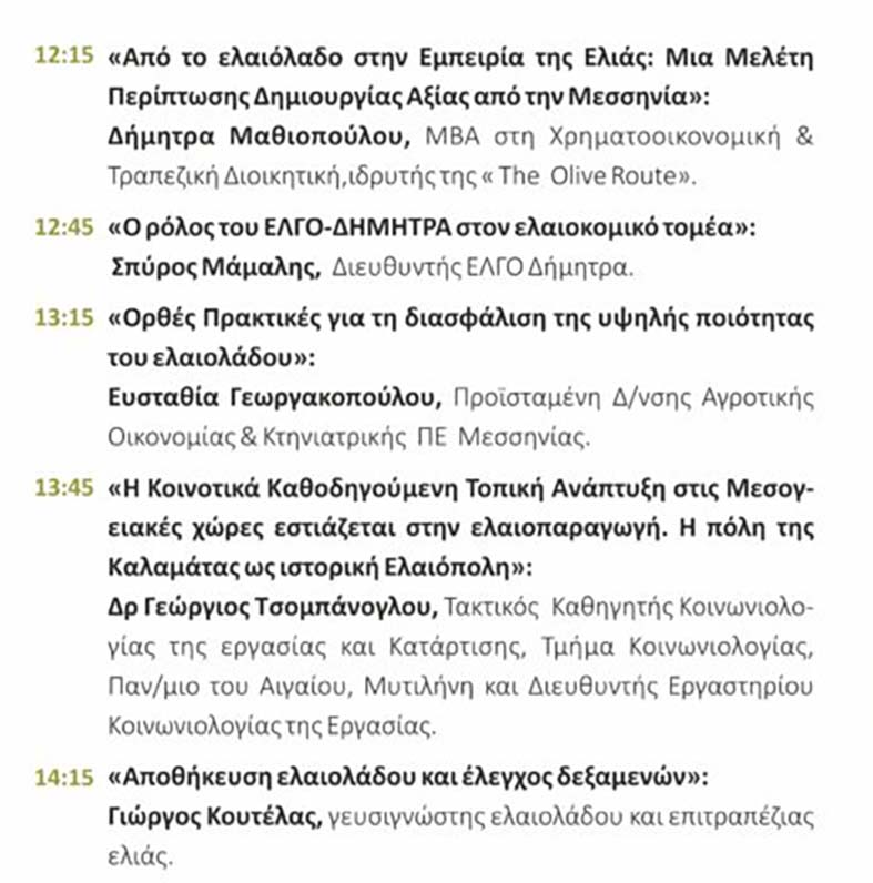 Ταυτόχρονα, θα αναδειχθεί η ανάγκη της συνεργασίας μεταξύ των παραγωγών και των συνεταιριστικών σχημάτων, ως βασικό εργαλείο για την ενδυνάμωση του κλάδου, την αύξηση της ανταγωνιστικότητας και τη δημιουργία ισχυρότερων δικτύων διανομής και προώθησης του ελληνικού ελαιόλαδου.